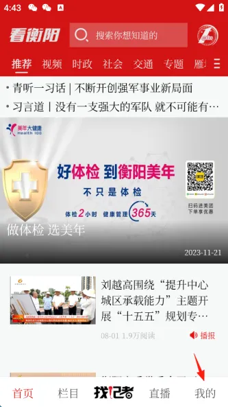 看衡阳APP-地方性综合服务平台,涵盖新闻资讯、政务信息、生活服务与智慧生活等模块。