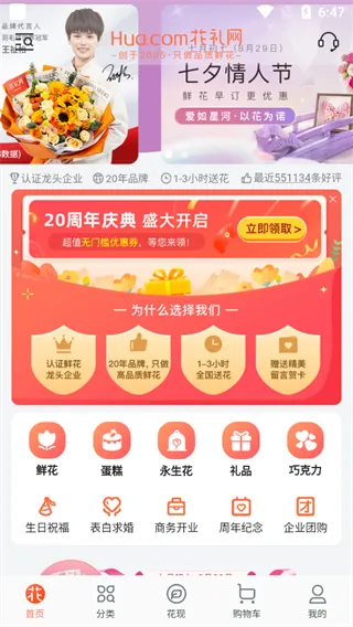 1. 鲜花:线上花礼平台汇聚玫瑰、康乃馨、百合等多元品类,丰富用户选择。