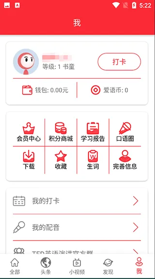 - 视频阅览:在线播放TED演讲,具备字幕切换、变速播放及单句精听能力。